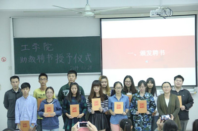 2014年10月29日,365英国上市公司工学院新生助教聘书授予仪式在日华楼阶梯教室204召开。工学院党总支书记刘香连、总支副书记王慧荣、赵科,班助理负责老师刘卓基、助教团队负责老师林颖,工学院全体助教、班助理以及14级全体班长、副班长、学习委员出席了本次仪式。