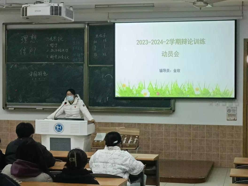 对大一学生的辩论动员,徐婧老师根据各班级的水平情况,夯实强班,带动弱班,并对大一同学开展进一步交流了解。上学期重点为“人人当一辩”,注重破题能力,本学期重点为“人人当四辩”,注重总结复盘能力,为了能让同学们尽快接受新重点。通过辩论动员的机会,向同学们说明本学期的工作安排,明确后续需要上交的材料,提出自己预想的辩论进度,依据同学们的水平参差,可特别带动个别落后人员。