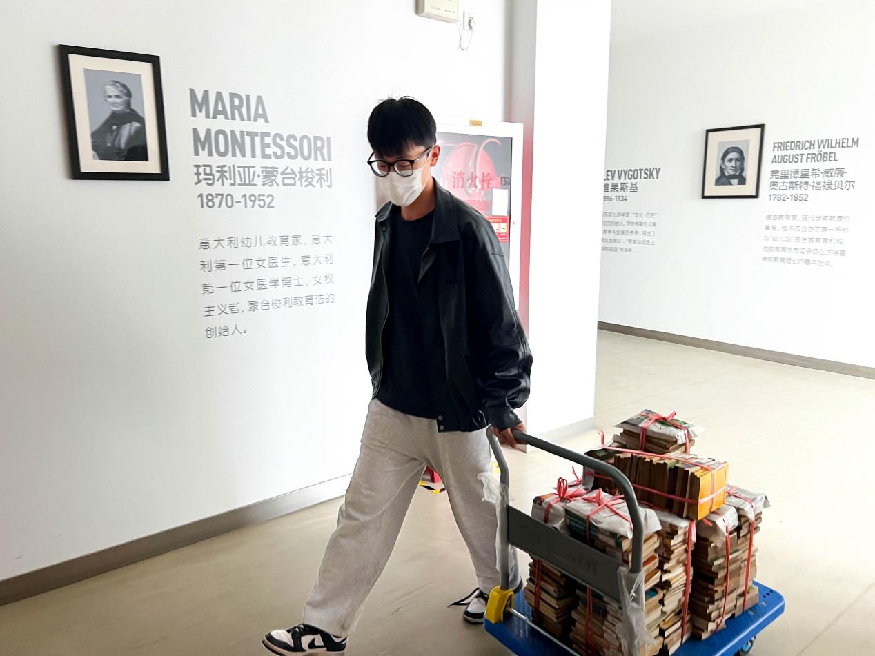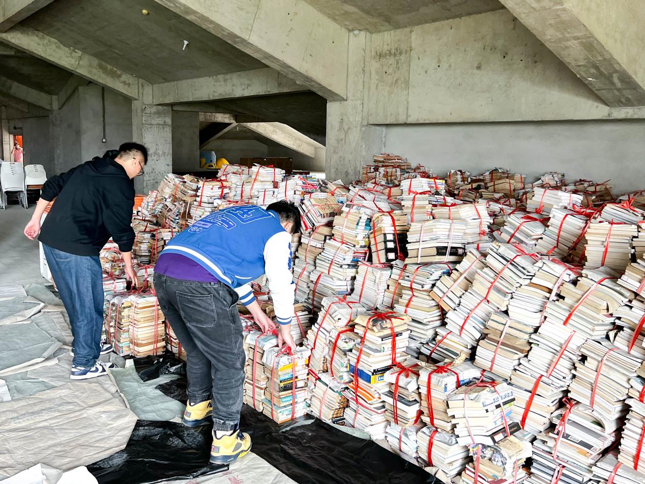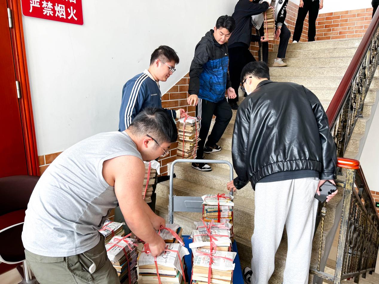 首先,在图书馆老师的带领下,志愿者们来到了四楼,整理旧书,并为其进行分类和编号。志愿者们分工合作,清点、搬运、运送书籍至五楼仓库,形成一条流水线,为书库腾出了更多的空间。这样流水线的方式可以减轻每位同学的工作量,从而提高工作效率。