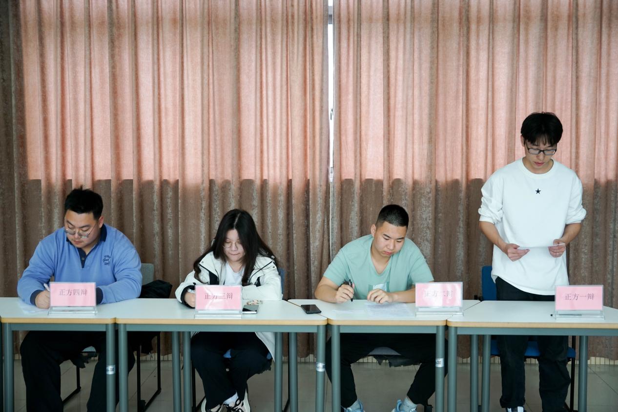 第五场辩论赛的辩题是“偶像应该为粉丝的行为买单吗”,此次辩论的正方是23机械电子工程,反方是23电子信息工程,本场辩论赛的主席是来自21计算机科学与技术的杨奕璇,评委是健康学院辩论队队长孙佳瑜和校辩论骨干成雨辛。