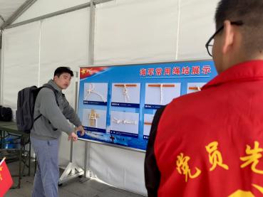在参观过程中,学生代表们首先被引领至01甲板,这里停放着直升机和各种海事设备。曾服役于和平方舟的党建学生代表郑紫东为大家详细介绍了直升机电源充电室、应急发电机室等关键部位,并亲自示范了海军常用的绳结技巧。同学们纷纷尝试,亲身体验了海军官兵的日常训练。同学们纷纷表示,要以海军官兵为榜样,努力学习专业知识,为祖国的繁荣富强贡献自己的力量。