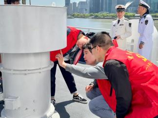 最后,学生代表们合影留念,共同记录下这难忘的时刻。他们纷纷表示,此次参观学习深刻感受到了海军75周年所蕴含的意义和价值,要将这次参观学习的收获转化为实际行动,将以此为契机,进一步加强自身学习和锻炼,努力成为德智体美劳全面发展的社会主义建设者和接班人。同时,他们也想对中国海军说一句话:“生日快乐!”祝愿中国海军在未来的日子里继续书写辉煌的篇章,为祖国的繁荣昌盛保驾护航!