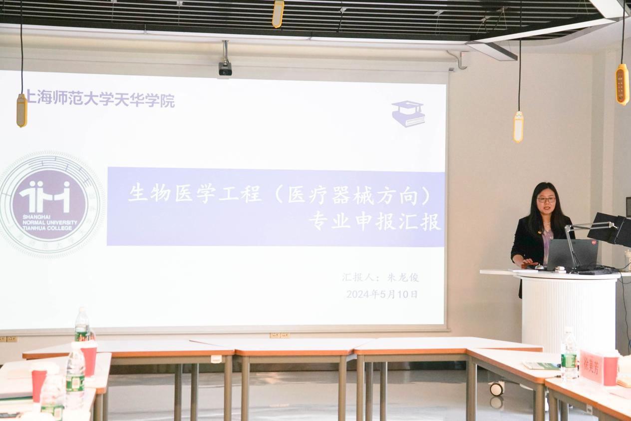 专业主任朱龙俊老师详细介绍了生物医学工程专业的申报情况,从申报理由、申报基础和培养方案等方面进行了阐述,展示了天华学院致力于打造该专业的决心和实力。