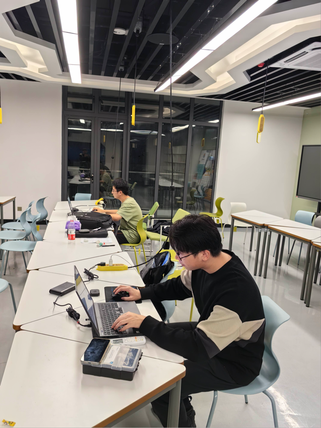 (两位同学为了比赛自费买设备进行不断测试与调整)