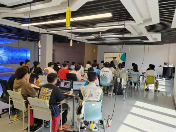 当周末周围的同学们都三五成群结伴出去玩的时候,苗时铭和王晓帅则是利用别人休闲放松的时间自学了鸿蒙系统,学习踏实刻苦的他们在自学基础掌握了鸿蒙技术后。此时的他们担当起了“小老师”一职。由王晓帅同学在台上给大家主讲,台下还有苗时铭同学作为助教给其余同学解答疑惑。但他们遇到的第一个问题很快就来到了他们的面前,大家都不会,那更何谈教书育人呢?对此他们的教学计划是边学边讲,而大一任务繁忙,如何从有限的时间里抽出时间来学习课外的内容则是王晓帅与苗时铭同学遇到的第一个大问题。