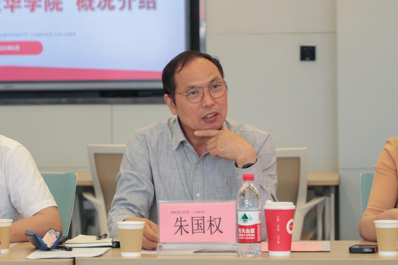 副校长朱国权在致辞中强调了天华学院位于嘉定工业区的地理优势,并回顾了学校建校20多年来取得的显著成就。他对社会各界的支持表示感谢,并期待通过此次交流建立长期合作关系,共同探索校企合作与产教融合新的的发展路径。