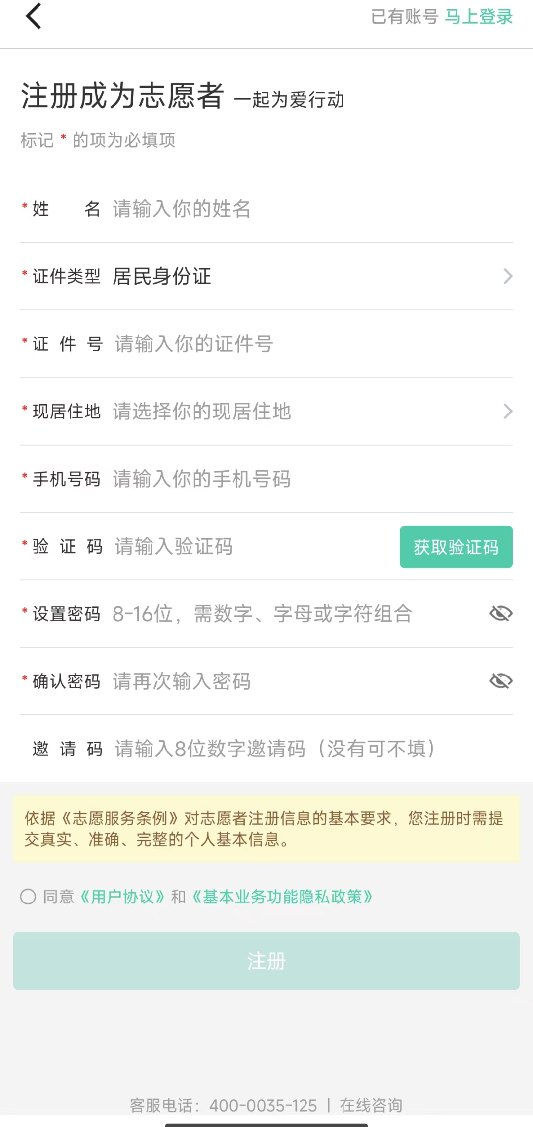 第二步:若是同学们初次使用,请先按照流程完成注册,注册完成后进行再登陆。