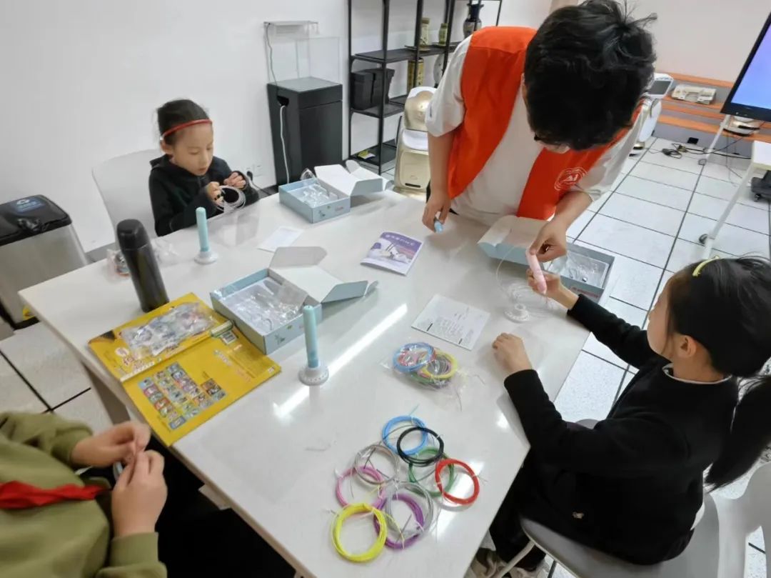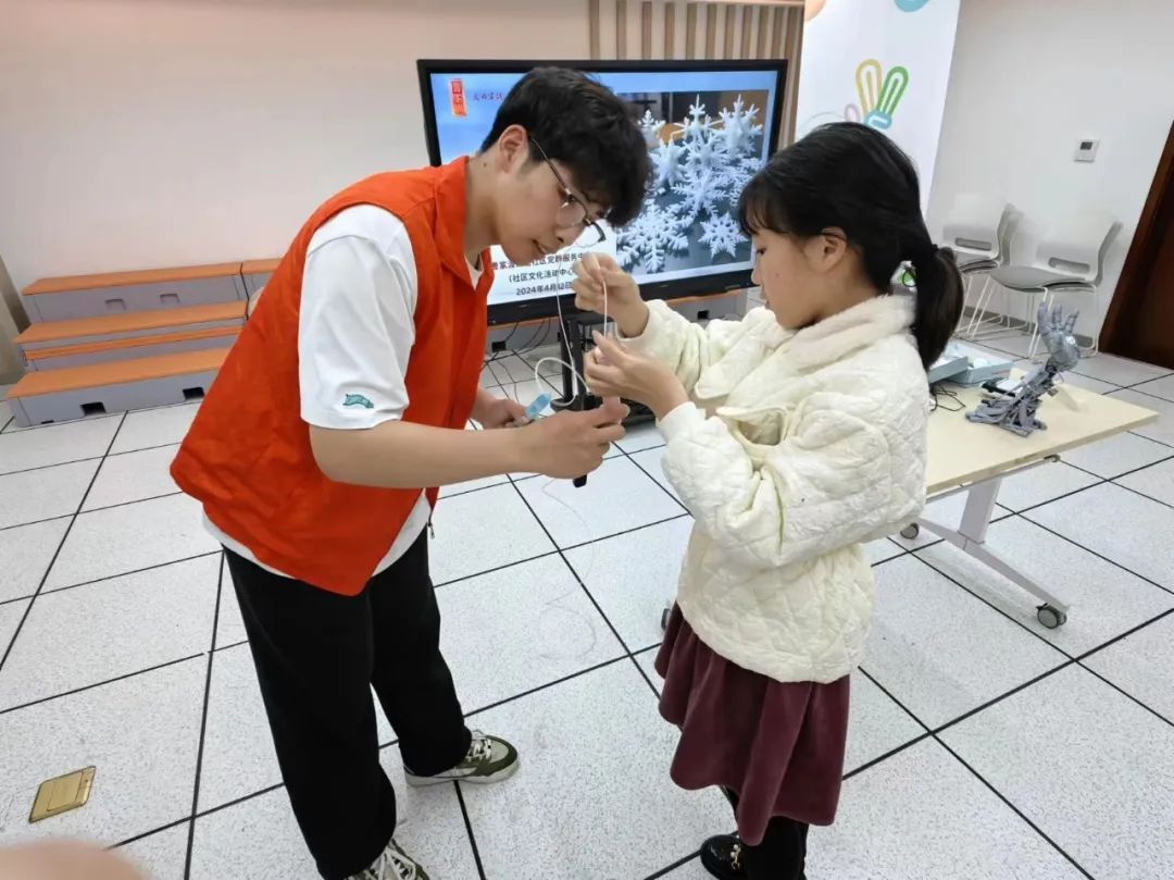 4月12日下午英国上市365螺丝钉万义志愿队在曹家渡街道社区党群服务中心(社区文化活动中心)教小朋友们用3D打印笔打印雪花。