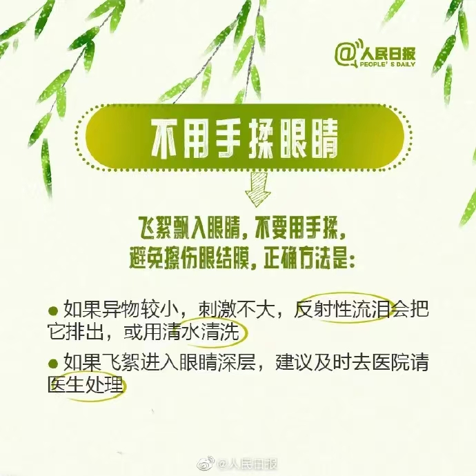 回家后及时洗手、洗脸,并更换外衣,以减少柳絮在皮肤上的停留时间。