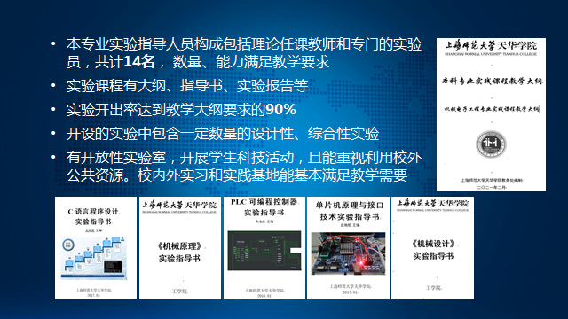 2个实习车间,7个专业实验室,3个共享实验室,供机械电子工程专业学生的实习和实践教学。