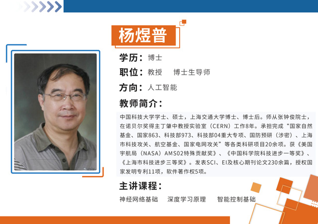 | 主讲课程:《神经网络基础》、《深度学习原理》、《智能控制基础》 |