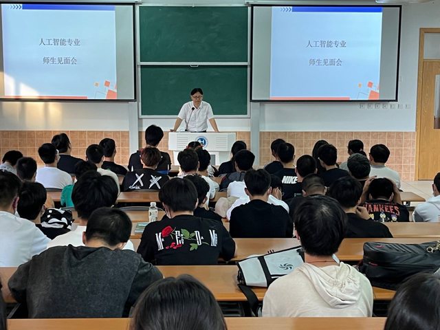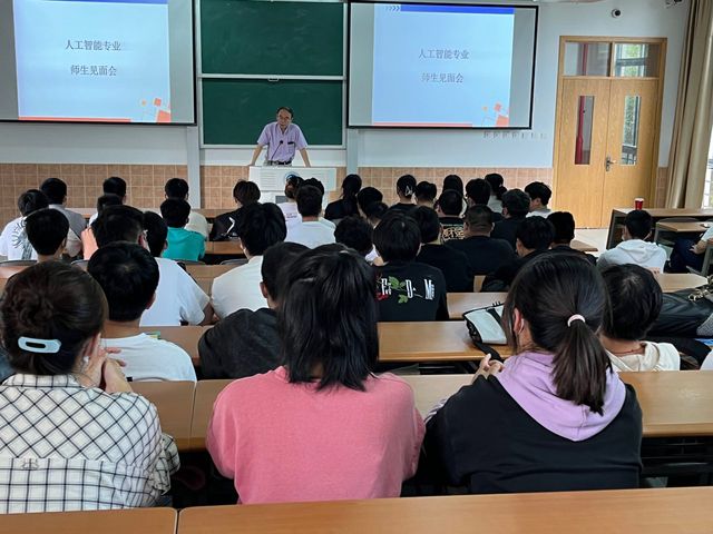 为帮助2022级人工智能专业的新生,尽快适应大学生活,顺利完成从中学到大学的角色适应和转变,进一步引导新生了解所学专业、端正学习态度,养成良好的学习习惯,树立远大的奋斗目标,使得他们能够在人生新起点上迈出坚定而踏实的第一步。2022年9月29日下午16点,人工智能专业召开2022级新生入学专业教育,2022级人工智能专业1班和2班全体学生参加,人工智能专业主任周丽婕老师主持,邀请杨杰教授、凌旭峰院长、钮佳超和冯居老师等专业教师代表参加。