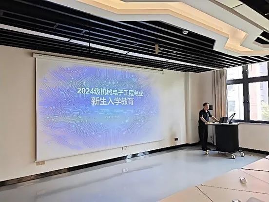 2024级机械电子工程专业新生于2024年9月13日下午13:00在旭华楼307AI综合培训室举行专业见面会。本次专业见面会由机械电子工程专业主任朱龙俊老师主持。