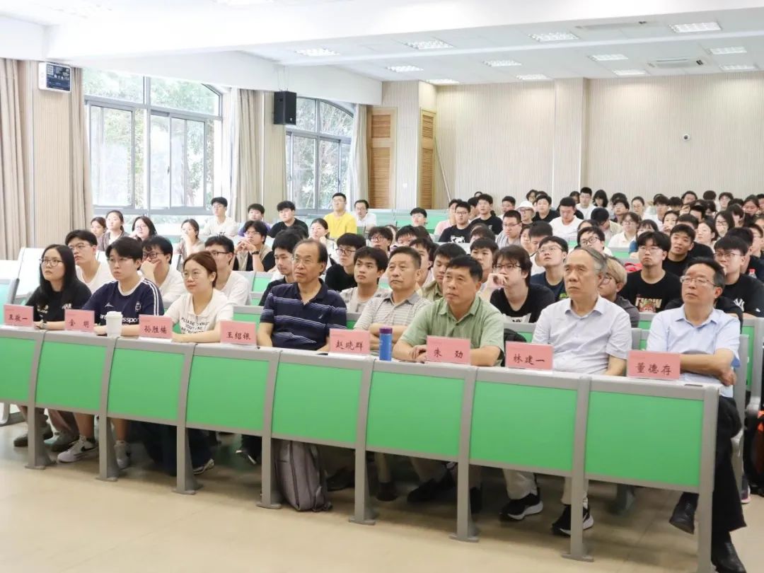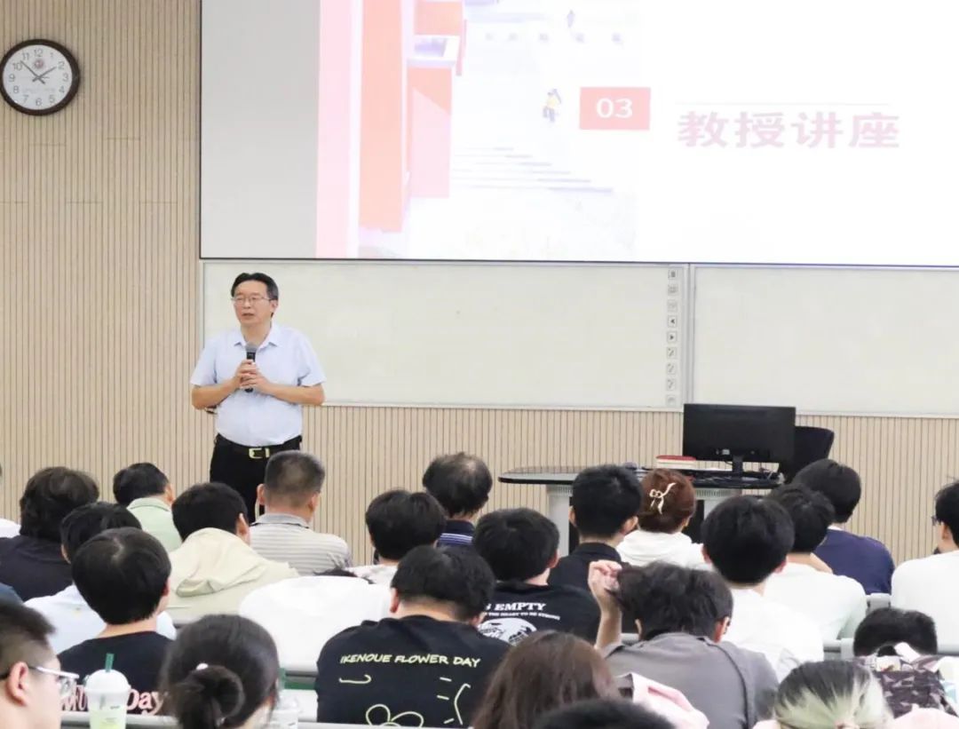 接着,电子信息工程专业指导教授董德存为各位新生开展讲座。首先,董教授祝贺各位同学顺利进入大学,开始新的学习生活,并希望同学们能够尽快适应新环境。他提到,专业的发展前景十分广阔,同学们需要好好把握机会,学好专业知识,为未来的工作奠定专业基础。