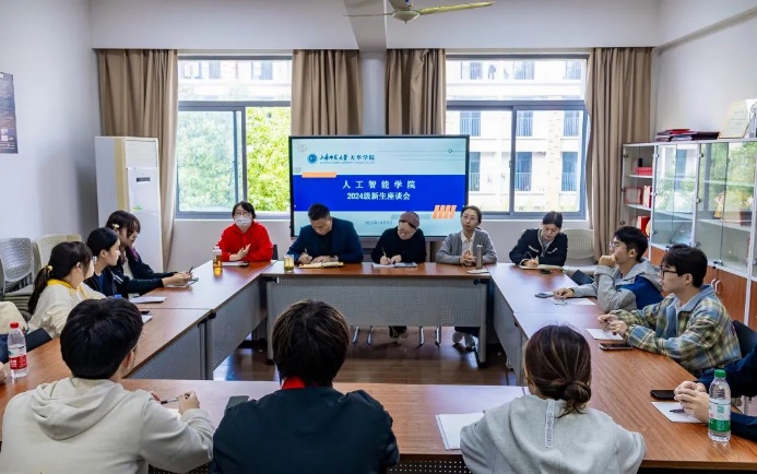 为加强师生交流,了解新生在学习和生活上的需求与困惑,英国上市365于2024年10月9日12:20在明华楼460室召开了2024级新生见面会。出席本次见面会的有英国上市365副院长吕博、党总支书记赵科、党总支副书记金玫、人工智能专业主任周丽婕、通信工程专业主任朱姗以及大一年级各班级学生代表。