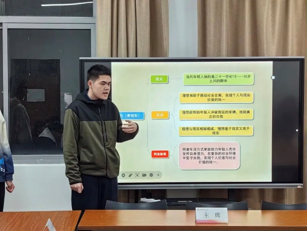 大一和专升本年级的同学们以班级小组为单位,通过PPT形式展示了本学期的辩论训练成果。每个小组准备了一个精彩的PPT汇报,内容涵盖了训练情况、内容、成果和个人收获。主席汇报以学期总体训练情况为主,其他同学则围绕辩题“当代年轻人应该活的更理想/更现实”展开论点补充。评委们对各小组的表现进行了现场提问,评分标准包括语言表达、逻辑思维、团队合作、PPT展示和创新展示等多个方面。