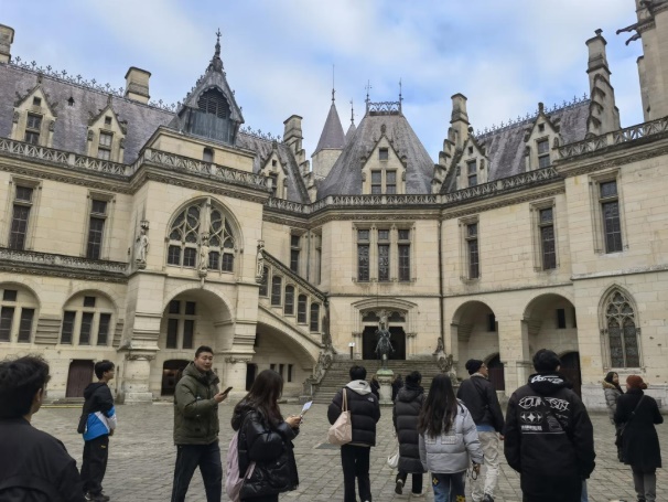 第三周周末,学校包车带领学生前往皮埃尔丰城堡,它静静坐落在法国巴黎北部贡比涅森林的东南部边境市镇。城堡那高大威严的城墙、错落有致的塔楼、错综复杂的内部通道与精巧坚固的城门机关,无不生动展现出中世纪防御工程的卓越智慧,学生们漫步其中,仿佛能触摸到那段古老历史的脉搏,沉浸于对中世纪欧洲文化与军事战略的深度探寻之中,极大地丰富了他们对不同文化的认知与感悟。