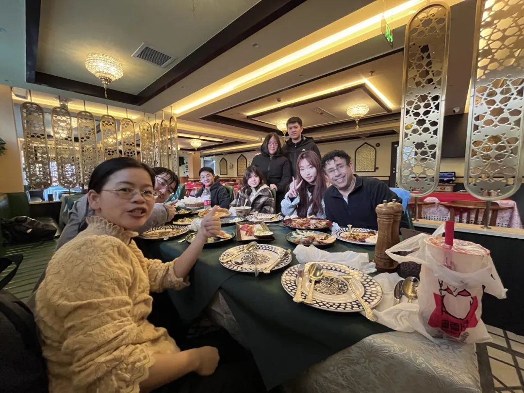 中午时分,团队转战静安区神州商务大楼,特别在外教Dr. Kaabi的推荐下,品尝了正宗的也门美食——千零一夜餐厅。这家餐厅独具异域风情,香气四溢的中东特色菜肴让人食指大动。Dr. Kaabi还热情地向学生们介绍了也门饮食文化,大家在享受美食的同时也开拓了文化视野,午餐时间充满了欢声笑语。