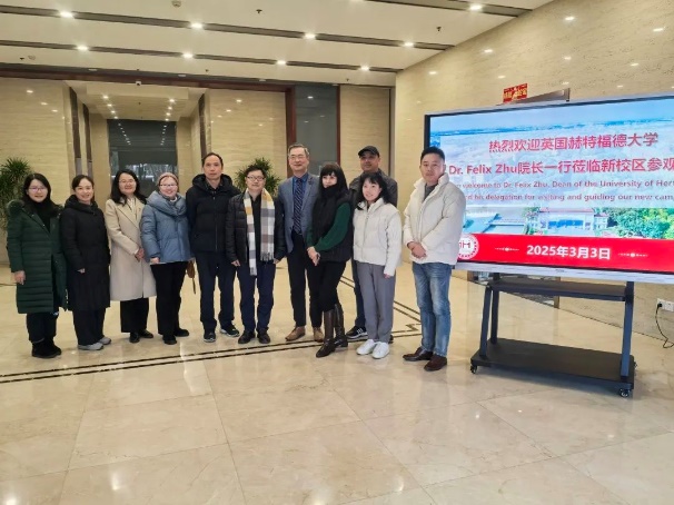2025年3月3日,英国赫特福德大学(UH)一行来访365英国上市公司,首先,凌旭峰副校长邀请Felix Zhu院长参观新校区,对新校区的布局、规划进行了详细的介绍,双方共同商讨未来合作的可能性。