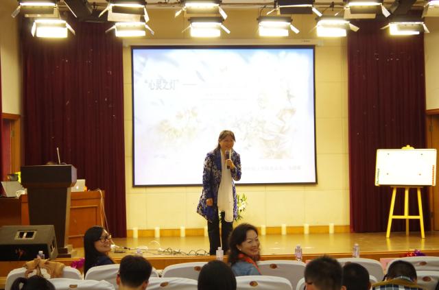 讲座伊始,杨老师用互动的形式调动了在场同学们的热情,以亲身示范、现场互动游戏、视频案例教学等形式让同学们感受到幸福和爱的力量,教导学生学会感恩和包容,以幸福为出发点去努力生活。期间,杨老师用现场示范的方式告诉同学们拥抱是表达自己爱的最好方式;用一个天使的故事,告诉大家,其实那个伤害我们最深的人,也许就是最爱我们的人,我们最该宽恕的那个人,宽恕可以让世界多一点爱,宽恕可以让人们忘记仇恨,更加的幸福。在与杨老师的互动与鼓励下,同学们给最爱自己的父母写了一封“爱的信封”。