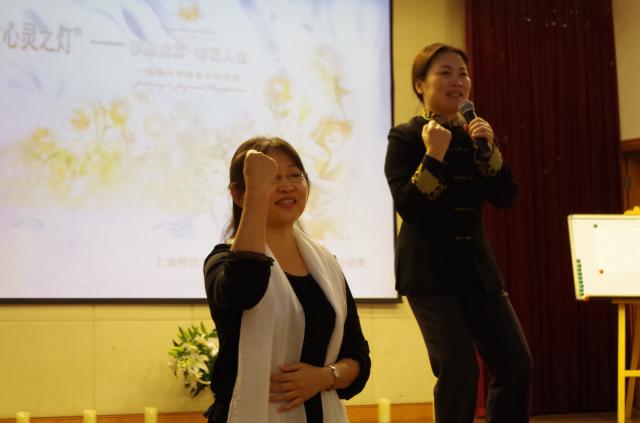 伴随着美妙动听的音乐,杨宝晋老师、蒋建荣老师以及她们的幸福团队集体为在场所有人带来了一份“精美的礼物”,用独特的方式向同学们展示幸福的真谛,在场的同学们用热烈的掌声向她们表示感谢,最后全场的同学们和幸福团队的老师们合影留念,本次活动圆满结束。