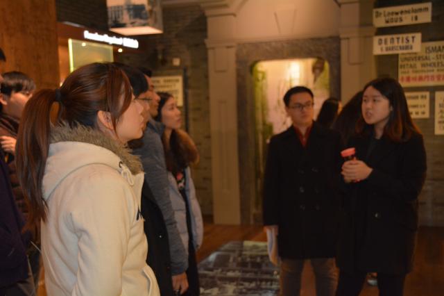 在纪念馆解说员的带领下,党员们首先参观了一号展厅——摩西会堂。解说员说,会堂里有上下两层,二楼是供女士和小孩做礼拜用,一楼是供男士用的。一楼会堂里有讲经台,约柜和镶嵌宝石的圣幕以及犹太教圣经。走出一号展厅,我们看到会馆的西墙上刻满了当年避难在上海的犹太人名字——13732个名字。解说员告诉我们经过许多年后,还有不少犹太人重返上海在这里寻找他们先人的名字。接着解说员带领大家参观了二号展厅和三号展厅,这两个展厅陈列的都是当时所留下来的宝贵资料、签证纸、生活用具,以及一些帮助过犹太难民的国人的事迹记录。透过那一件件无声的陈列展品,我们感受到了,在那动荡的1937年-1941年间,善良的上海人民把自家大门连同自己的心扉向犹太难民打开,热情接纳并帮助这些背井离乡的人们重建家园。出了纪念馆后我们还来到了它对面的白马咖啡馆,这里重现了当时二战时犹太难民在上海的生活场景。