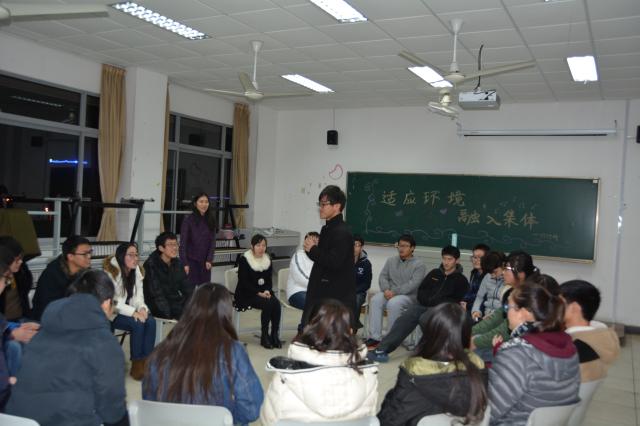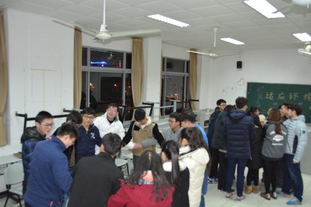 2015年12月17日 ,工学院心协负责人周期在日华楼554带领15级计算机科学与技术1班开展了第二期心理团体辅导建设,此次团辅以“适应环境,融入集体”为主题,目的是为了使大家进一步适应新的环境,融入新的班级,接纳新的同学老师,形成和谐氛围。