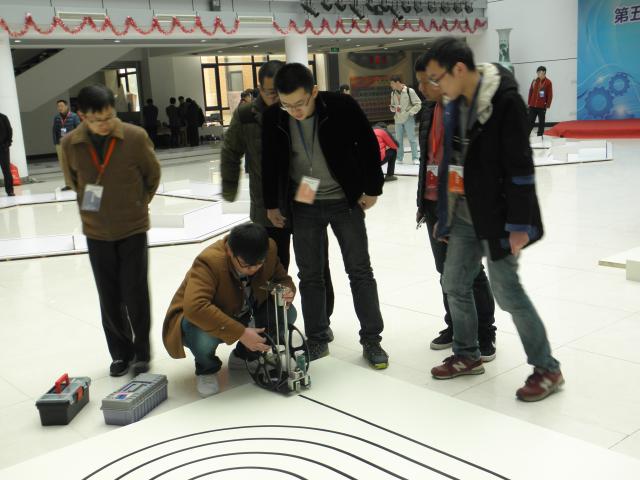 此次比赛作为全国赛的预选赛,同时也为探索大学生工程训练综合竞赛模式改革,首次采取了机电结合的形式。竞赛分为螺旋型循迹常规赛、“S”型避障常规赛和多边形综合挑战赛三个项目。要求参赛队自主设计、制作一辆“自动识别三轮无碳小车”,小车动力由1kg砝码从400mm的高度降落的重力势能提供,前轮转向由舵机与传感器组成的电控装置实现,完成相应轨迹的行走。。