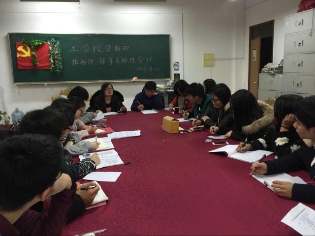 2016年2月28日晚18:00,我院在明华楼351召开了新学期班助理、辅导员助理会议,党总支副书记金玫、辅导员牛风学出席本次会议,会议由金玫主持。