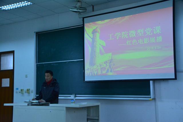 2016年3月24日下午16点30分工学院党员工作站全体党员于日阶403召开微型党课暨红色电影《钱学森》展播。莅临本次大会的有工学院党总支书记刘香连,党总支副书记赵科、金玫,工学院党员工作站组织部指导老师唐佩琳,宣传部指导老师张焰梦,纪检部指导老师权有良及全体党员同志。
