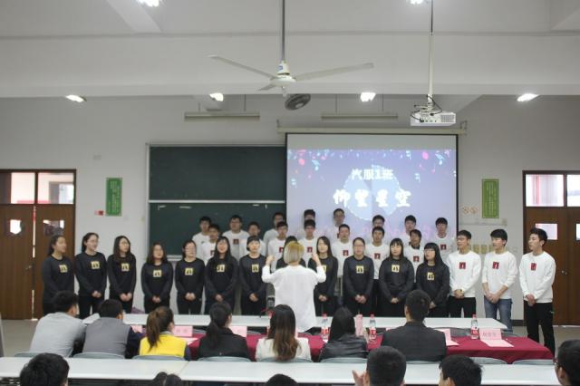 15汽服1班以鲜明的黑白配,吸引了无数眼球,他们抬起头触碰这星空,唱响《仰望星空》;