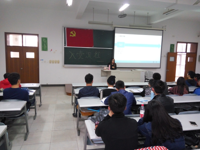 2016年4月12日下午16点30分工学院第五期中级党校于日阶302举行开班第二讲——入党流程。本次培训课由汽车服务工程党支部书记张焰梦担任主讲老师,部分大一、大二同学参加。