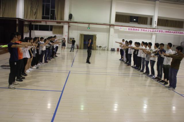 活动伊始,指导老师以“手指操”的形式拉开了序幕,来调动同学们对活动的热情与积极性,并且活跃了现场的气氛;然后是“不倒长城”,“云端行走”,充分考验了同学们的团队合作精神、毅力以及对彼此相互的信任感。接下来的两个项目具有更是极强的合作体验:团队组建和挑“五”。团队组建是由队旗、队名、队号、队歌、队形五项来组建自己的团队,这需要队长的领导性,队友的合作性和团队的思维创造;而挑“五”是最后一项、也是最让同学们积极性最高的游戏,通过大脚板、数字堡垒、移动高尔夫、鼓舞人心与成为团队必杀技的激情节拍,这些都充分锻炼了大家的反应能力、协调力和合作精神,也使他们激情高涨、意犹未尽。