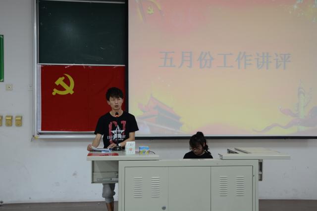 当雄壮的国歌声响起,本次会议进入第一个议程,纪检部负责老师权友良进行五月份工作讲评,分别从成长手册完成情况、寝室卫生结对情况、大一结对学习情况等方面进行总结,指出了部分党员同志工作不到位的地方,并强调,党员同志要严格要求自己,不仅要认真对待组织安排的各项工作,更要积极主动加入到有关活动中去。