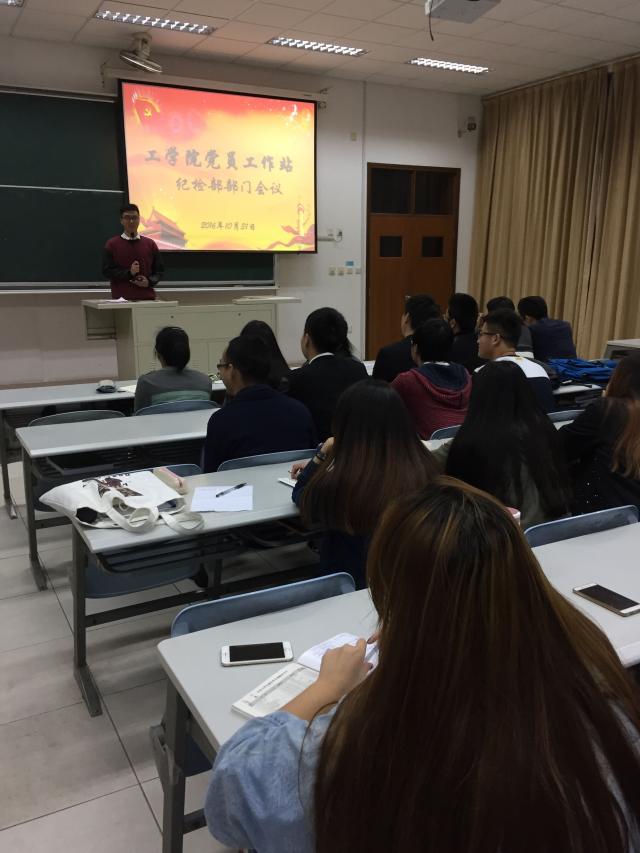 2016年10月31日纪检部部门例会于日阶403召开,会议由纪检部负责老师权友良、部长黄思嘉主持,纪检部全体成员参加。