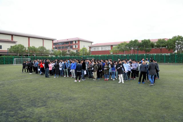 我院大四同学在操场集结
