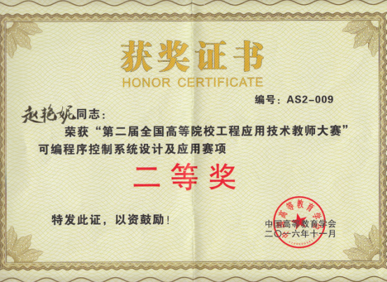11月13日,历时3天的第二届全国高等院校工程应用技术教师大赛决赛在杭州落下帷幕,大赛由中国高等教育学会主办。本届大赛,报名参赛队伍共386支,分别来自106所高校。决赛邀请了52位相关领域专家担任专家评委和现场裁判,清华大学吴澄院士和浙江大学孙优贤院士亲临比赛现场悉心指导。经过激烈的比赛,工学院教师赵艳妮在大赛上获得“可编程序控制系统设计及应用”赛项全国二等奖。