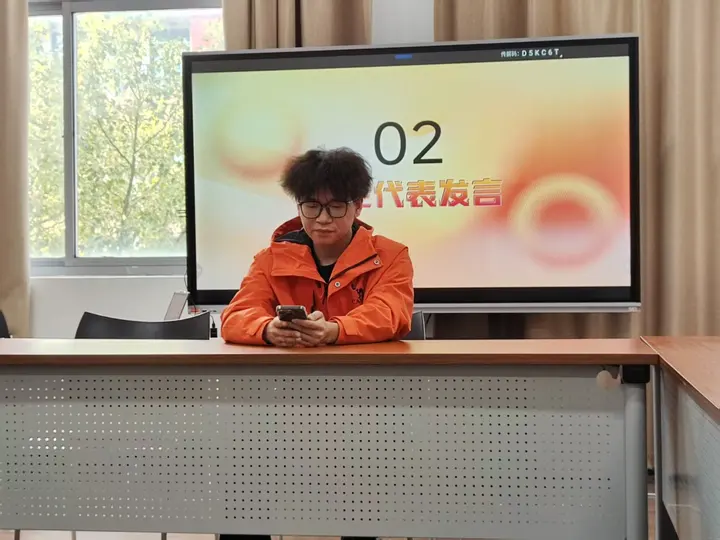 24 级学生代表钱天家发言,分享投身服务站的初心与热情,承诺将与其他受聘同学携手,推动AI 心理服务事业发展,引发全场共鸣。