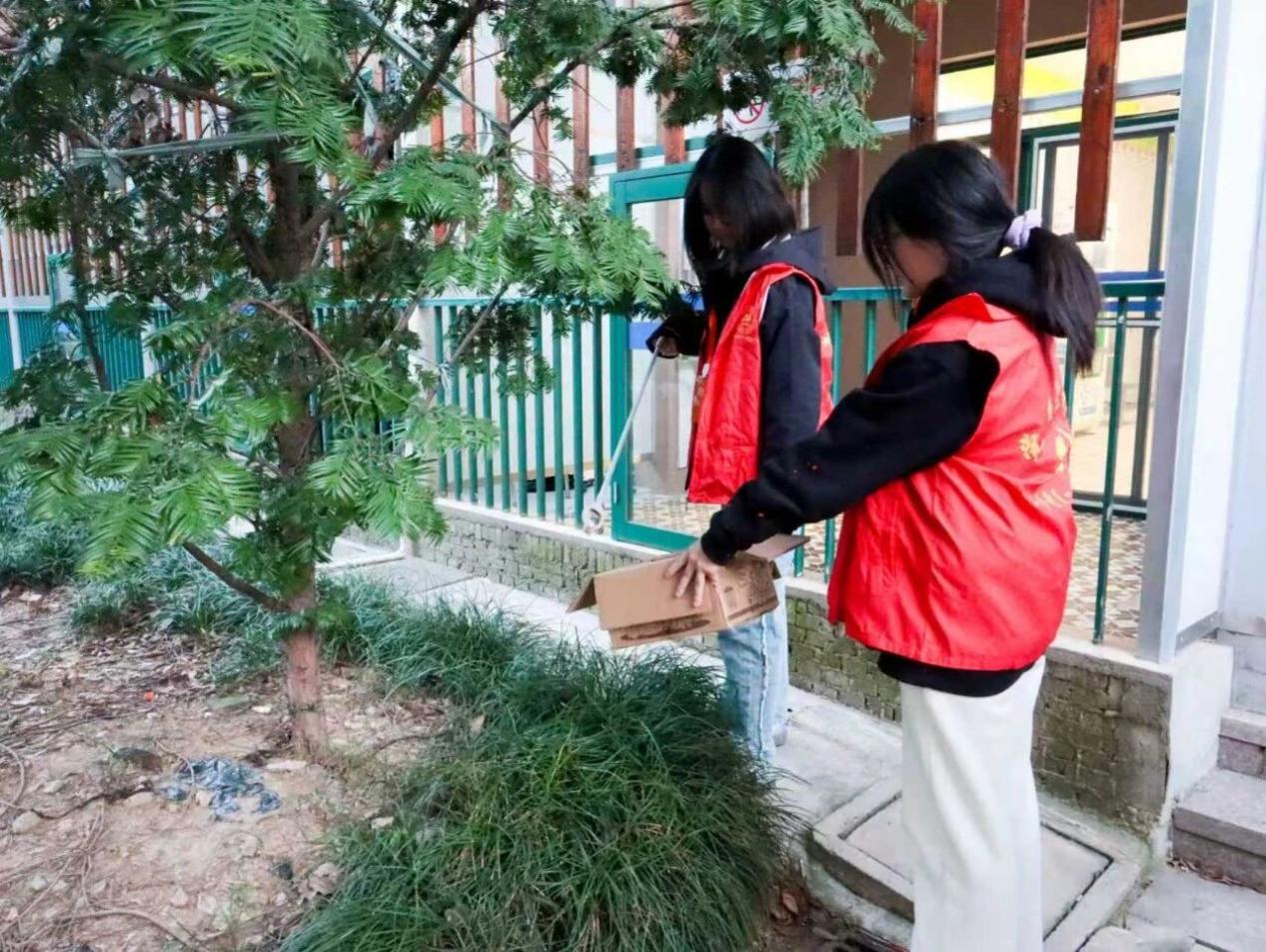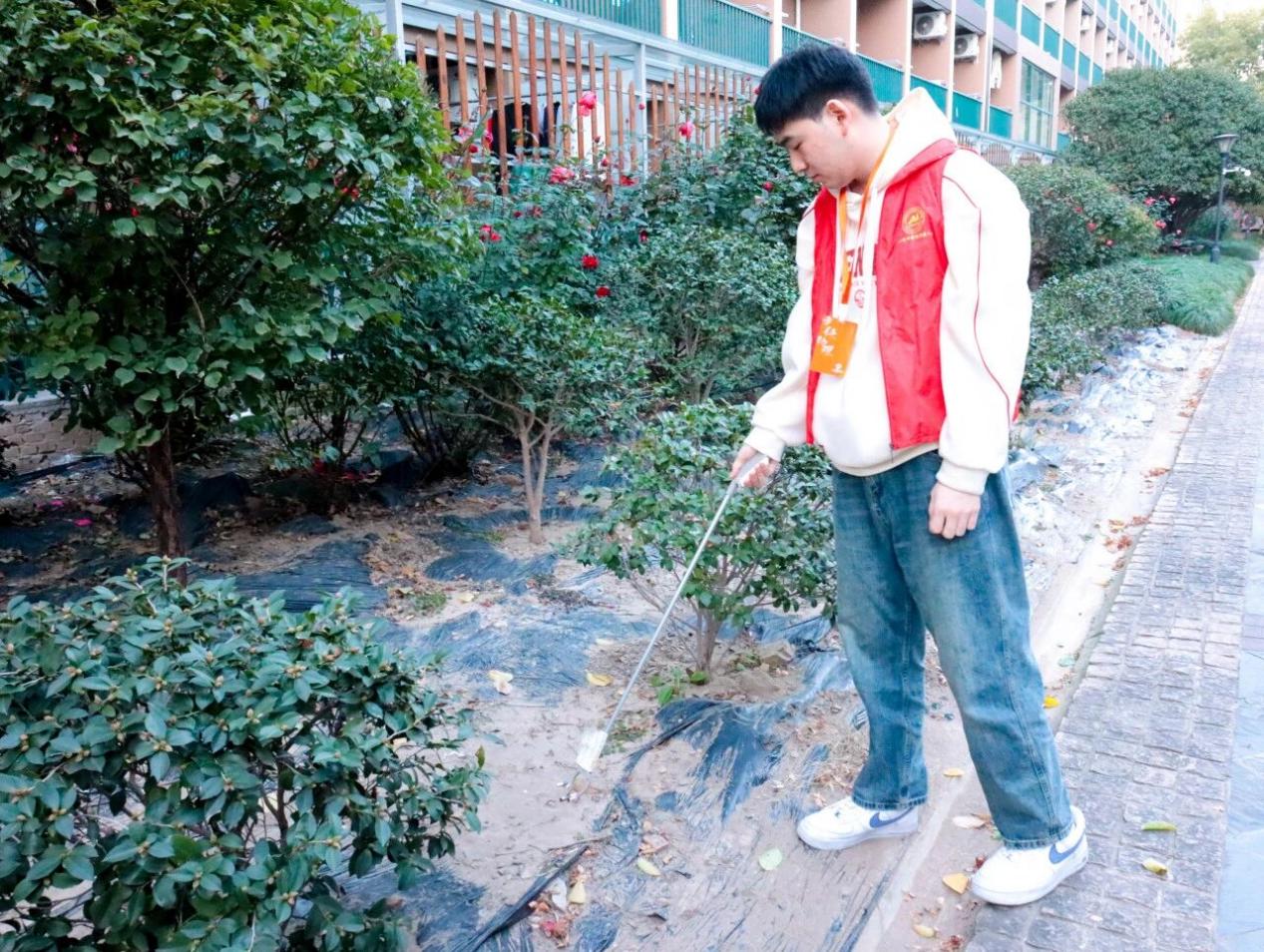 活动现场,成员们携带清扫工具,迅速展开行动。一部分成员手持夹子清理枯枝落叶;一部分成员俯身捡拾绿化带内的包装袋、烟头;还有一部分成员则对垃圾进行细致分类收纳。从台阶缝隙到灌木深处,每一处卫生死角均被全面清理。大家配合默契,既专注于杂物清理,又留心保护周边绿植,全程无一人懈怠。凭借辛勤的汗水,四号楼区域的环境迅速焕然一新。