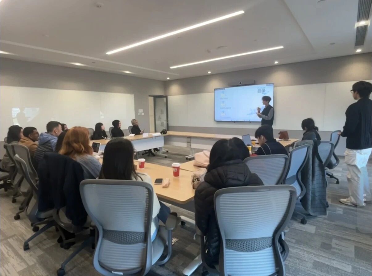 在阿里专业导师的引导下,两位同学与来自浙江大学、墨尔本理工等海内外高校的师生一同参观了阿里杭州总部,系统了解了阿里文化与价值观、通义千问大模型及钉钉等数字化平台。通过沉浸式体验,让同学们对“技术驱动商业价值”的企业创新理念有了更加立体的认知。
