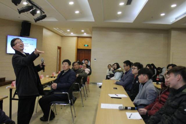 开讲前,吴志明先生站在台上用德语向大家问好,大家用响亮的掌声表示欢迎。而后吴先生向大家介绍自己毕业所在地是上海外国语大学的德语专业,在教学过程中从德语到汉语到经济管理给德国人讲课。同学们对于吴先生的经历也十分感兴趣,积极主动地在台下响应。
