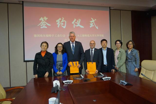 为促进中德两方的科技与文化交流、资源共享,提升我校教师和学生的实践动手能力和综合素质,我校与德国埃尔福特手工业行会(HWK)将合作聚焦于汽车服务工程专业领域职业能力培训和进修项目,双方在签约过程中围绕学生的联合培养、师资培训等项目进行了深入的探讨。