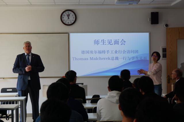 10月24日上午,德国埃尔福特手工业行会(HWK)总裁Thomas Malcherek先生一行应邀来天华学院进行合作项目的签约和宣讲活动。